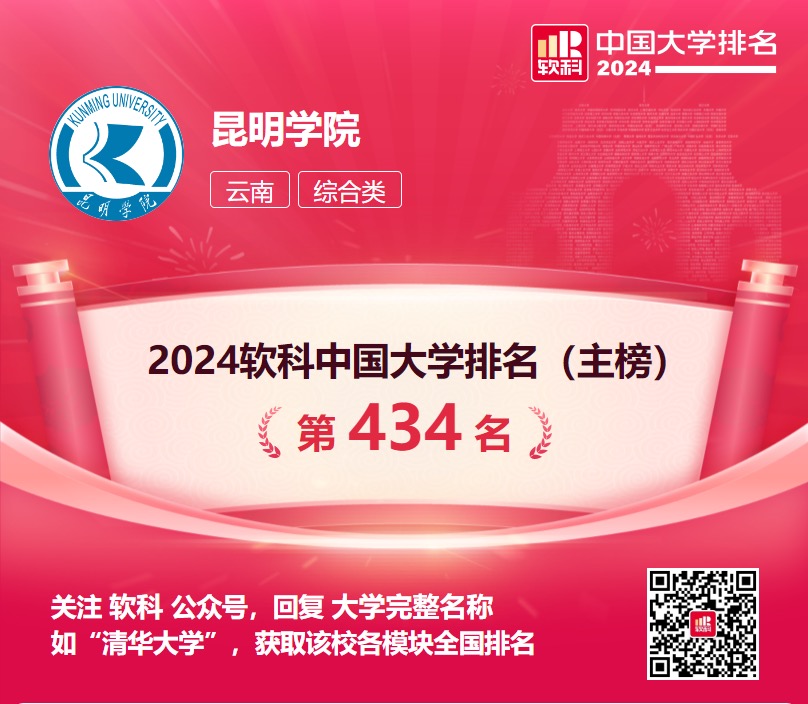 近日,高等教育专业评价机构软科发布“2024软科中国大学排名”,beat365英国官网网站主榜排名全国第434名,比去年提升63位,为云南10所位列主榜500强高校之一,是云南省排名位次年度提升幅度最大的高校。