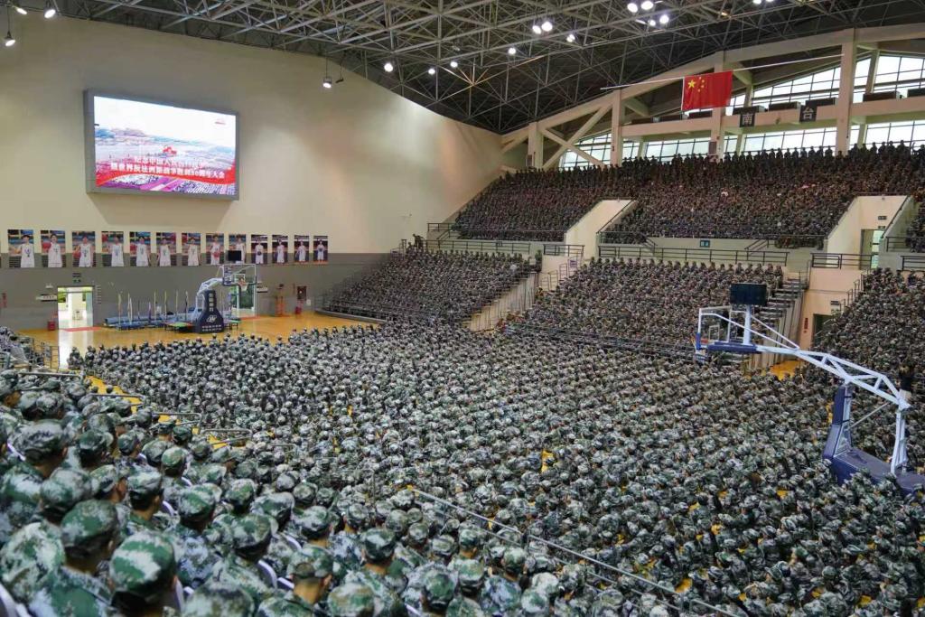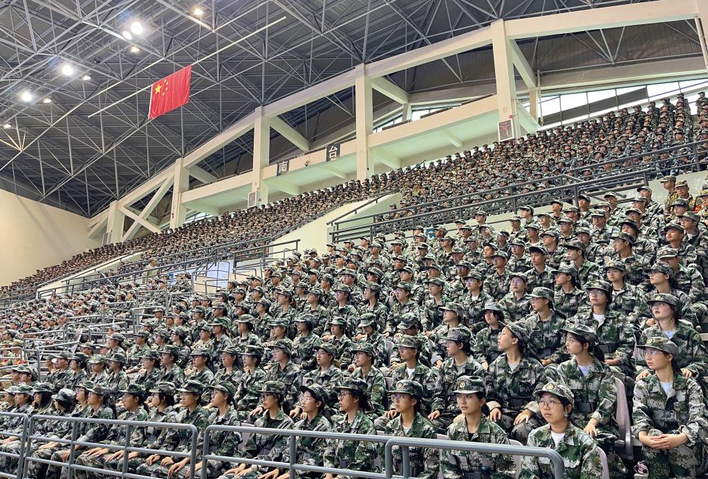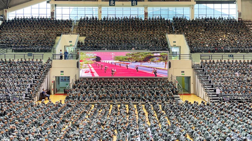 军训新生集中观看