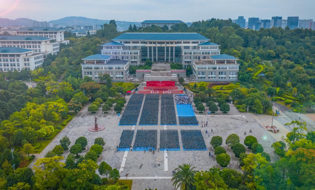学校党委书记金幼和,党委副书记、校长丁文丽,官渡区人民武装部副部长石涛,全体在家校领导出席典礼,党委委员、副校长彭志远主持。学校各职能部门负责人、各学院负责人、辅导员老师、班主任参加典礼。