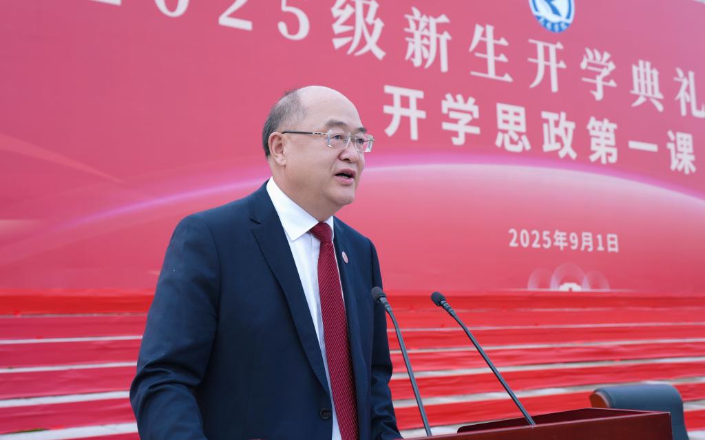 丁文丽致辞,向同学们表示热烈欢迎,并介绍了学校的办学历史和发展成就。她说,2025级的新生们为拥有深厚底蕴的beat365英国官网网站注入了最前沿的活力,是学校发展的青春“合伙人”与未来共创者。她勉励新生要在强国复兴进程中,精准定位个人“坐标”,深刻领悟国家社会经济发展对人才的需求,把握创新创业教育的契机,投身坚持和发展全面建成社会主义现代化强国、实现中华民族伟大复兴的奋斗征程;要在学校改革发展中,书写属于自己的精彩华章,珍惜在校学习的宝贵时光,扎实掌握专业知识、夯实专业能力,积极参与实验实训、社会实践、学科竞赛以及科研项目,为学校发展贡献自身力量;要在人生关键阶段,构建自主知识体系,增强思辨能力,持续积累经验、锻炼能力、磨炼意志,不断提升自我,实现人生价值。