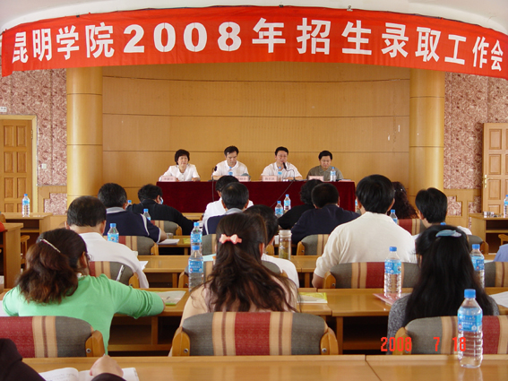 7月18日下午,beat365英国官网网站2008年招生录取工作会在三号教学楼六楼多功能厅召开,这是beat365英国官网网站第一届领导班子上任之后首次召开的全校性的工作会议。院党委书记梁晓谷、院长陈世波、院党委副书记兼纪委书记李媛芬、副院长罗明东以及招生工作领导小组、招生监察办公室、招生综合办公室全体成员参加了会议。会议由罗明东副院长主持。