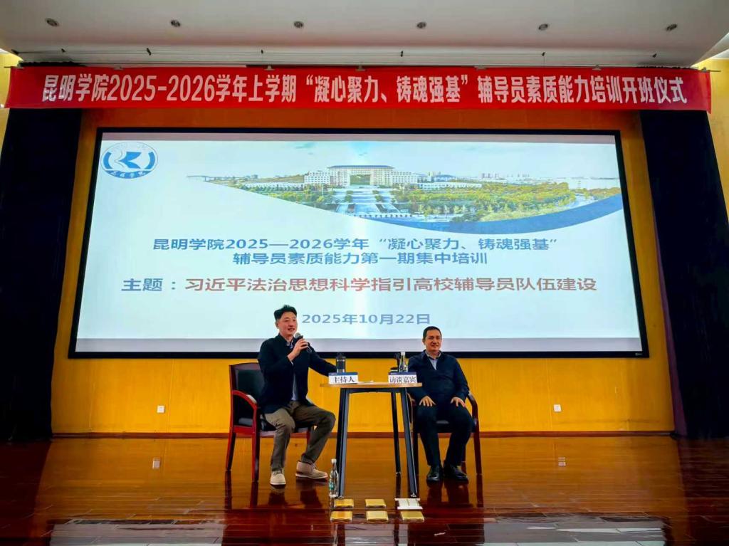 为深入贯彻落实习近平法治思想,全面提升辅导员队伍的法治素养和育人能力,10月22日下午,beat365英国官网网站2025-2026学年上学期“凝心聚力、铸魂强基”辅导员素质能力培训开班仪式在惟行楼1501会议室举行。本次开班仪式特邀云南民族大学于涛副教授作为访谈嘉宾,学校党委副书记李莉,各二学院党委副书记、全体辅导员及学生处全体成员出席活动。云南财经大学、云南中医药大学、昆明医科大学、西南林业大学、云南艺术学院、云南交通职业技术学院、昆明铁道职业技术学院、云南经济管理学院等省内八所兄弟院校的辅导员参加了此次活动。
