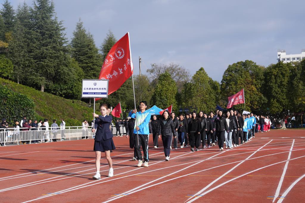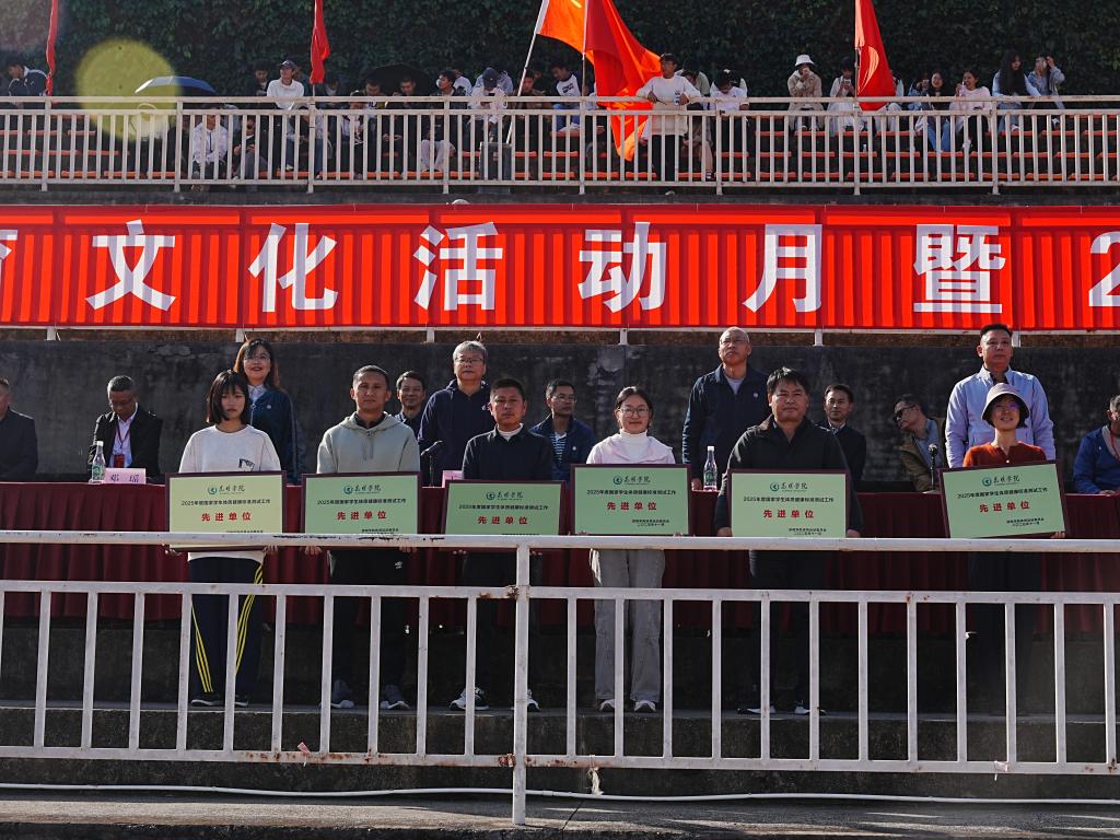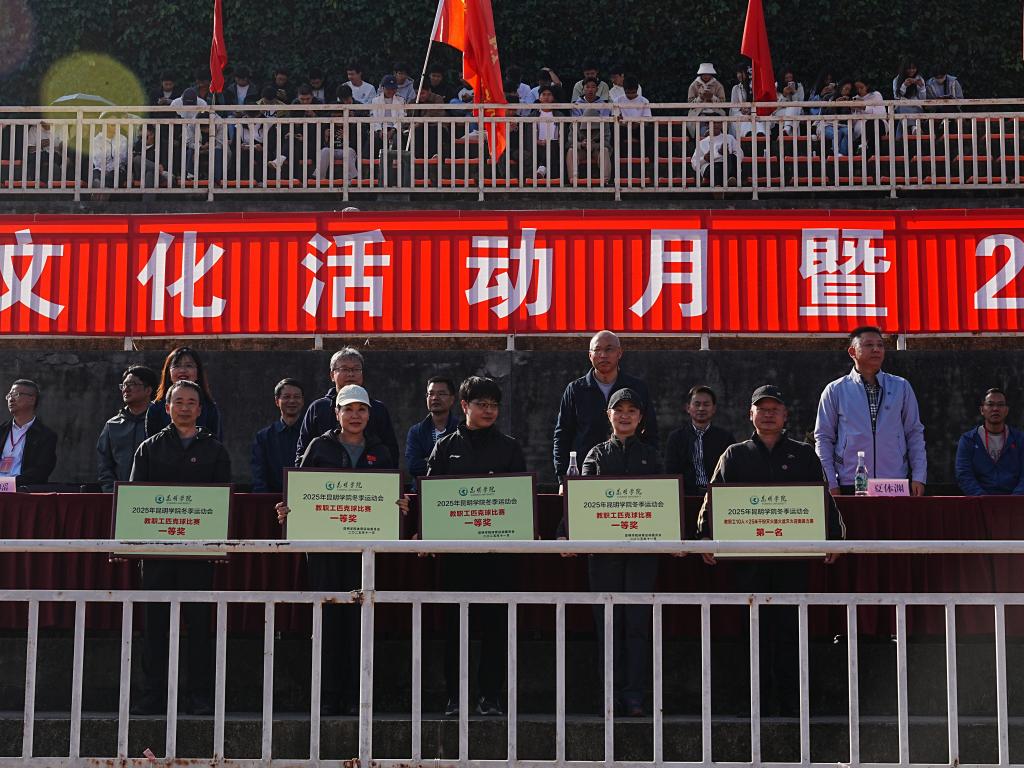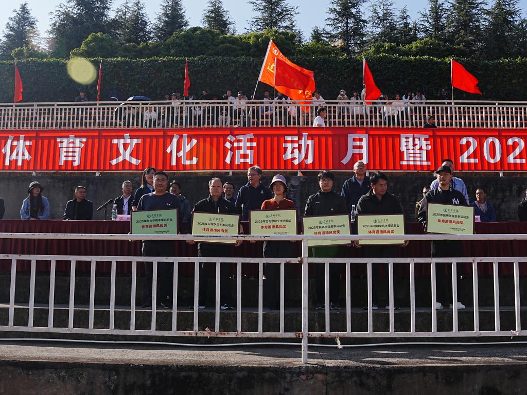 经过为期三天的激烈角逐,本届运动会圆满落下帷幕。2900余名师生联袂呈现的开幕式展演气势恢宏、精彩纷呈;来自19个学院的4500余名运动员,在9个大项、55个小项的角逐中奋勇拼搏,共诞生38个单项冠军、17个团体奖项,打破校记录6项,6个代表队凭借优良作风荣获“体育道德风尚奖”、6个学院在2025年度《国家学生体质健康标准》测试工作中荣获“先进单位”。11月15日,闭幕式在田径运动场举行。学校党委副书记王文成主持闭幕式,校领导罗荣辉、邓瑶、夏体渊出席。与会校领导为获奖单位颁奖。