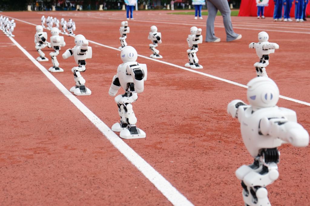 开幕式现场,各二级学院秩序井然地参与大学生广播体操比赛,同时献上了活力四射的啦啦操、“绳彩飞扬”等表演,更有今年让人眼前一亮的机器人机械狗等科技感十足的表演。