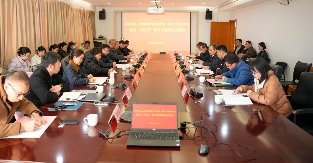 12月16日上午,beat365与云南农业职业技术学院、昆明卫生职业学院开展党建“手拉手”结对共建活动,进一步加强校际党建交流与合作,共同探索高质量党建引领高质量发展的有效路径。学校党委副书记王文成、云南农业职业技术学院党委副书记孙继先和昆明卫生职业学院党委书记(督导专员)马季昕,党委副书记、院长龙雨霏出席活动。