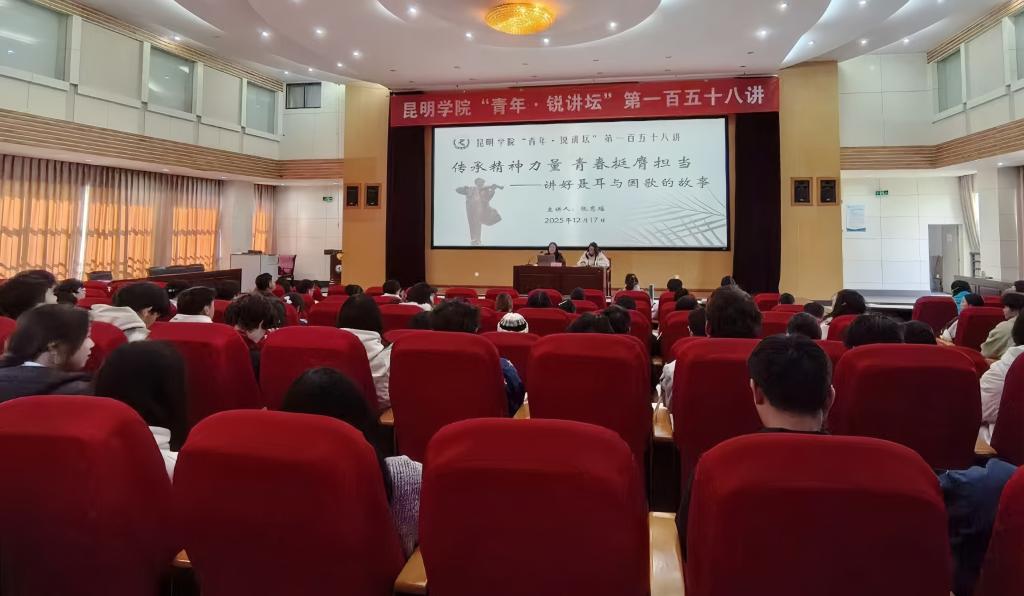 为深入学习贯彻党的二十届四中全会精神,贯彻落实习近平总书记考察云南重要讲话精神,持续讲好“聂耳和国歌的故事”,传承红色基因,12月17日下午,校团委依托“青年·锐讲坛”第一百五十八讲开展“传承精神力量 青春挺膺担当——讲好聂耳与国歌的故事”主题宣讲活动,本次活动邀请到云南省青年讲师团成员、马克思主义学院副教授张惠瑶,为全校300多名师生作主题宣讲。