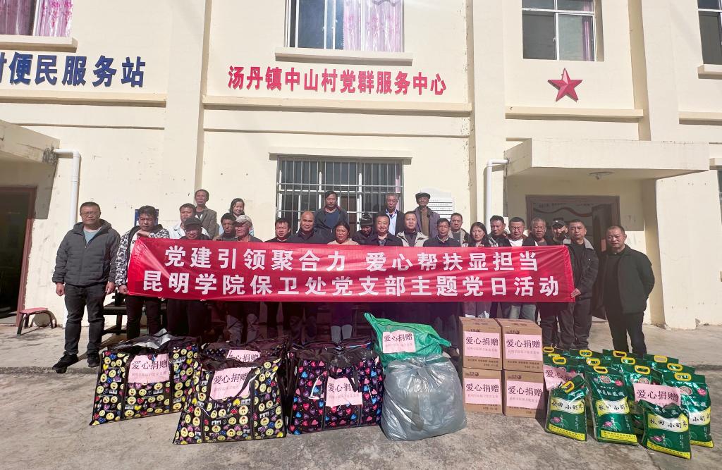 12月12日,保卫处党支部全处教职工前往东川区汤丹镇中山村开展乡村振兴帮扶活动,看望学校驻村工作队员黄非同志。