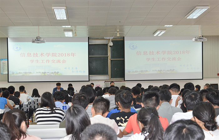 9月2日,为了让18级新生尽快了解学生工作内容,增强安全防范意识,熟悉各项规章制度,更好地在纪律和规矩的框架下开启大学生活。信息技术学院在博识楼1003组织开展学生工作介绍会。学院党总支书记陶军、全体辅导员,18级全体新生参加会议。辅导员岳维好老师主持会议。
