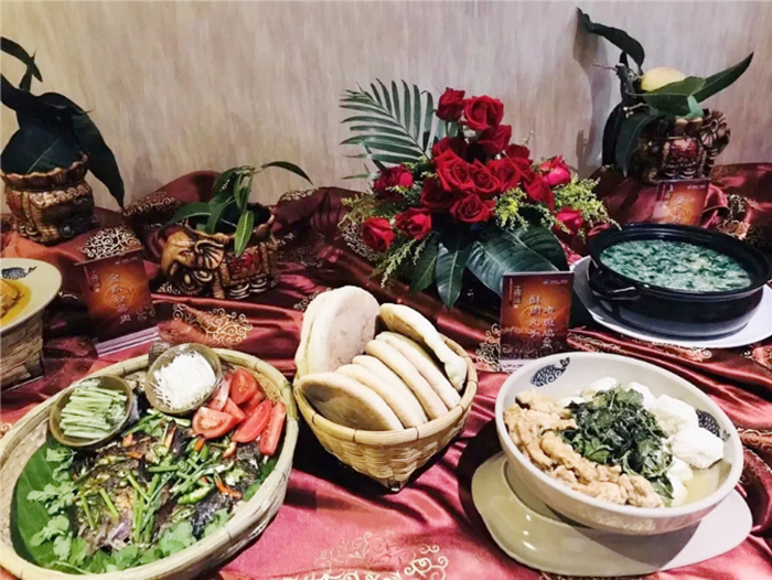 课题组还研制了华坪民族融合大餐——土司宴,土司宴的制作讲究食材的常见易得,而制作的精良美味,更具民族风情。选取华坪本地放养家禽、时令蔬菜和特色野菜,经过专业厨师们巧手匠心的制作和烹饪,腊月风干肉、土司烤鱼、蛋花野菜、酥肉丸子煮斑鸠菜……一道道具有华坪少数民族特色的菜肴新鲜出炉,为四方来宾带来一场视觉和味觉的盛宴。