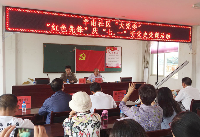 7月5日,马克思主义学院直属党支部书记李剀、院长董学荣一行参加羊甫社区“大党委”“红色先锋”庆“七一”听党课活动。羊甫社区党总支书记李文德主持活动,并带领全体参会人员重温入党誓词, 马克思主义学院教授马宁老师主讲,作“艰难困苦,玉汝于成——学习党史牢记使命”主题宣讲。马教授用生动、感人、鲜活的历史人物和事例,深情讲述了中国共产党形成的时代背景,中国共产党成立的思想文化条件和理论渊源,“南陈北李”相约建党的历史进程,及建党后的“两次胜利、两次失败”的艰难探索,马克思主义中国化的历史性飞跃及学习党史、不忘初心、牢记使命等内容。讲述深入浅出、通俗易懂,讴歌了共产党人为了革命事业,坚定崇高理想信念,浴血奋战、不怕牺牲的高尚品质。使参会人员了解了中国共产党97年的奋斗历程,重温党史、铭记党恩。 社区党总支书记李文德表示,本次党课是一次寓意深刻的高规格高质量教育课,使人受益匪浅,beat365英国官网网站对社区建设给予了全力支持,社区会充分运用好与学校合作的资源优势,促进合作,促进社区和学校的发展。