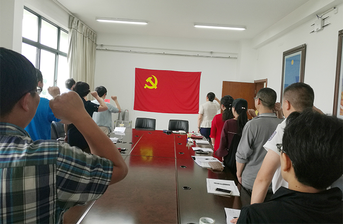 随后,支部开展了6月份党员“政治生日”活动。在庄重的氛围中,支部全体党员同志整齐列队,高举右手,面对鲜红的党旗再次庄严宣誓,重温了入党誓词;支部书记杨璐同志对过“政治生日”的党员表达了祝贺,并提出了具体要求与大家共勉,激励过“政治生日”的党员同志永远牢记自己的党员身份,践行“四讲四有”标准,争做“四个合格”党员;过“政治生日”的党员同志也表达了个人不忘初心,踏踏实实做好本职工作,为党为学校发展做出应有贡献的决心。