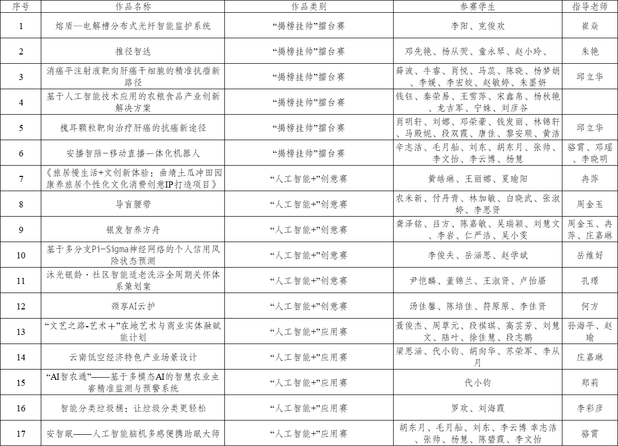 为全面落实科教兴国战略、人才强国战略、创新驱动发展战略,充分激发beat365青年学子创新潜能与创造活力,推动理论知识与实践应用深度融合。beat365英国官网网站于2025年6月-7月积极动员青年学子报名参加2025年“挑战杯”全国大学生课外学术科技作品竞赛“人工智能+”专项赛和“揭榜挂帅”擂台赛,经过遴选最终确定推报6个项目参加“揭榜挂帅”擂台赛,推报11个项目参加“人工智能+”专项赛,现将参赛作品情况予以公示。