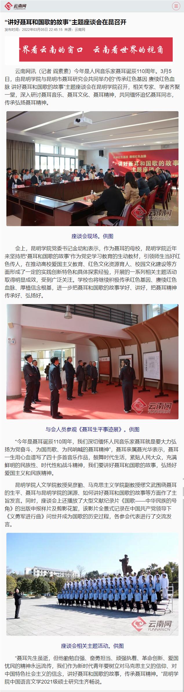 “讲好聂耳和国歌的故事”主题座谈会在昆召开