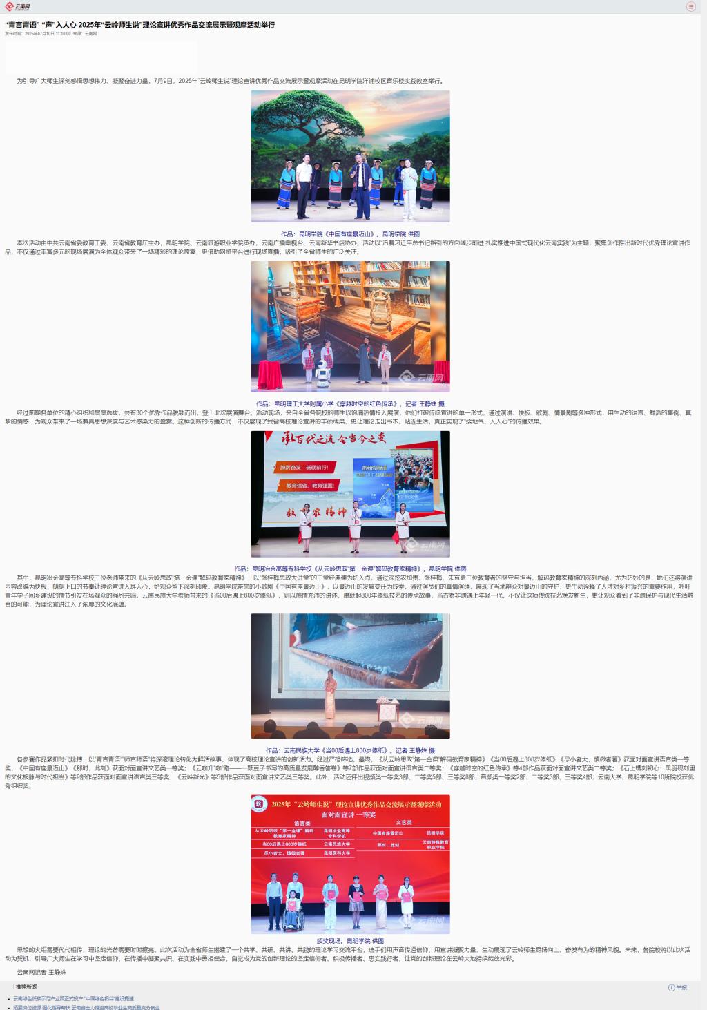 “青言青语” “声”入人心 2025年“云岭师生说”理论宣讲优秀作品交流展示暨观摩活动举行