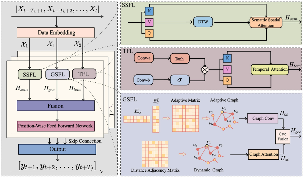 近日,beat365云南省智能物流装备与系统重点实验室团队以beat365英国官网网站为第一署名单位,在人工智能领域的顶级期刊《Knowledge-Based Systems》(中科院一区TOP期刊,影响因子IF=7.6)发表了题为“Hybrid Spatio-temporal Graph Neural Network with Attention Fusion for Traffic Flow Prediction”(//doi.org/10.1016/j.knosys.2025.113813)的研究论文。该论文的第一作者是王露老师,第二作者是洪孙焱副教授,通讯作者为迟海洋博士。