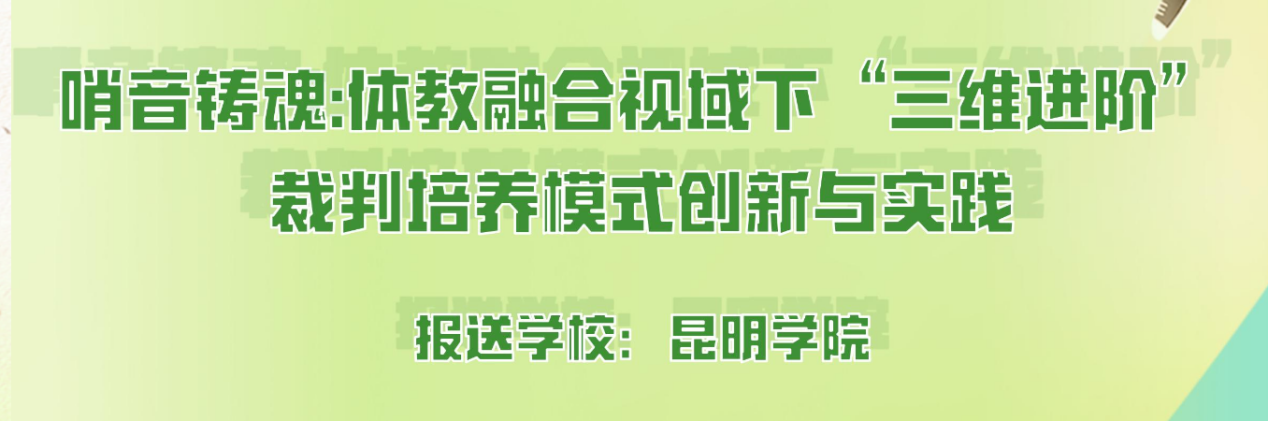 beat365体育学院魏文婷老师主持申报的典型案例《哨音铸魂:体教融合视域下“三维进阶”裁判培养模式创新与实践》,经省级专家评审后推荐报送教育部,最终从全国众多优秀作品中脱颖而出,成功入选全国集中展示的50个典型案例名单,并在“人民网+”客户端、人民日报少年客户端等官方主流媒体平台进行展播。