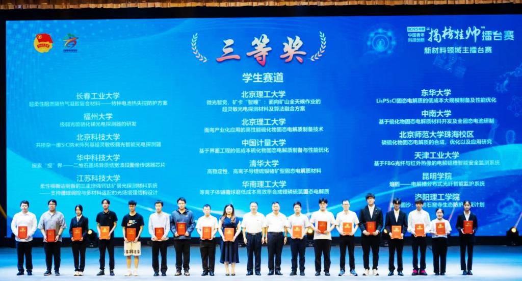 近日,2025年度第十九届“挑战杯”全国大学生课外学术科技作品竞赛“新材料领域”终审擂台赛在福建龙岩圆满落幕。beat365英国官网网站化学化工学院2024级化学工程与工艺专业本科生李阳、克俊欢组成的参赛团队,凭借“熔盾-电解槽分布式光纤智能监护系统”项目,在激烈角逐中脱颖而出,荣获学生赛道三等奖。